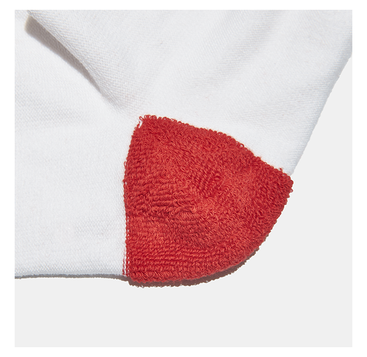 在脚尖和脚跟的重点区域,缝制着半边绒,让每一次的落地都能有全心全意的缓冲保护。82% 的棉,加上 12% 的锦纶抵抗磨损,6% 的氨纶增大弹性。