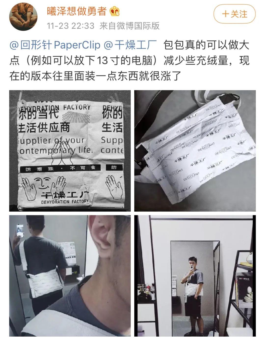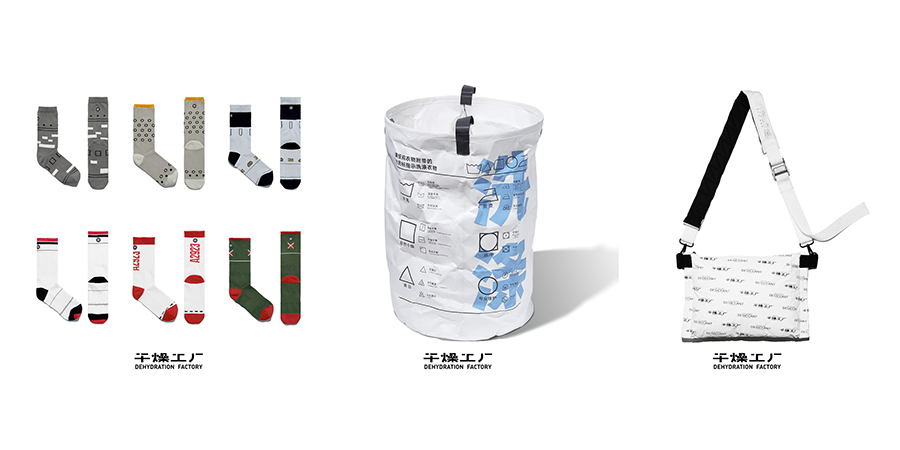 一个多月前,干燥工厂开业,上线了三款实体产品:「核子炸弹中筒袜」、「水洗标脏衣桶」、「干燥剂通勤包」。