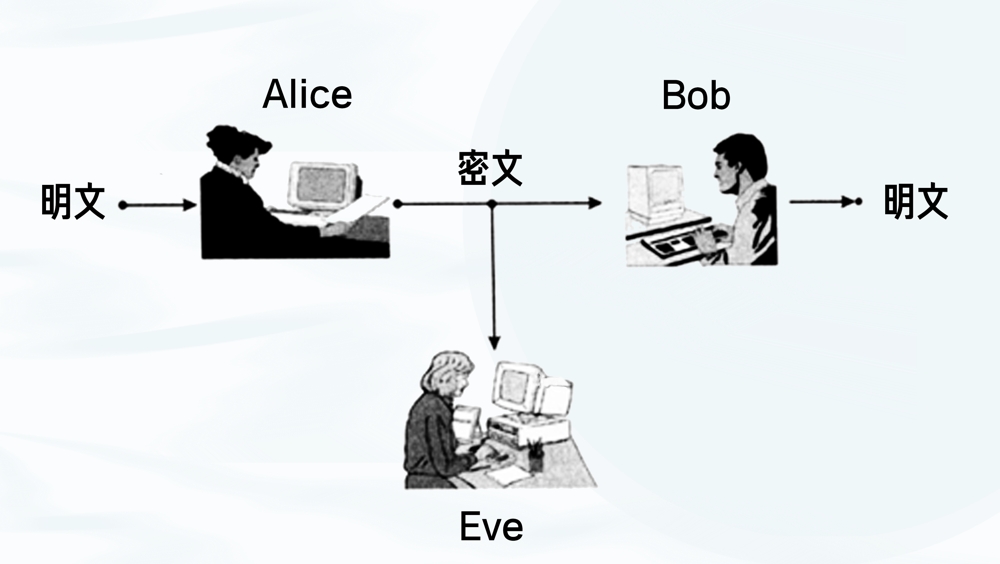 自 1949 年香农发表《保密系统的信息理论》后,密码学开始成为一门科学,并发展至今。而密码学的各种基础概念,可以从三个代称开始讲起:Alice,Bob 和 Eve。