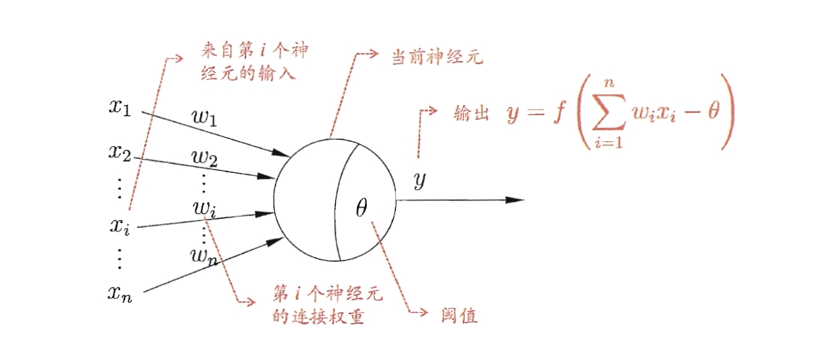 这个过程可以被简化成一个用数学表示的神经元模型: