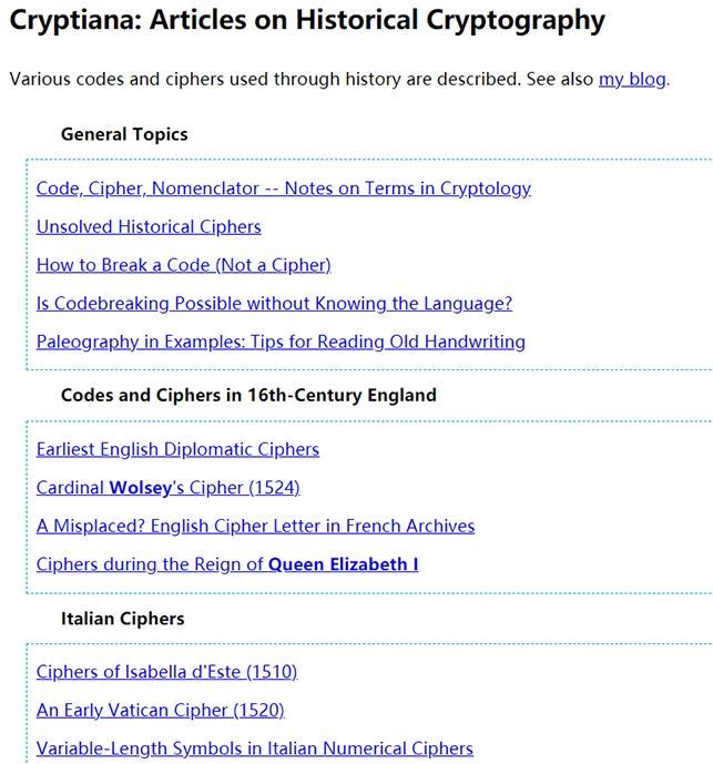 历史上的著名密码整理:http://cryptiana.web.fc2.com/code/crypto.htm