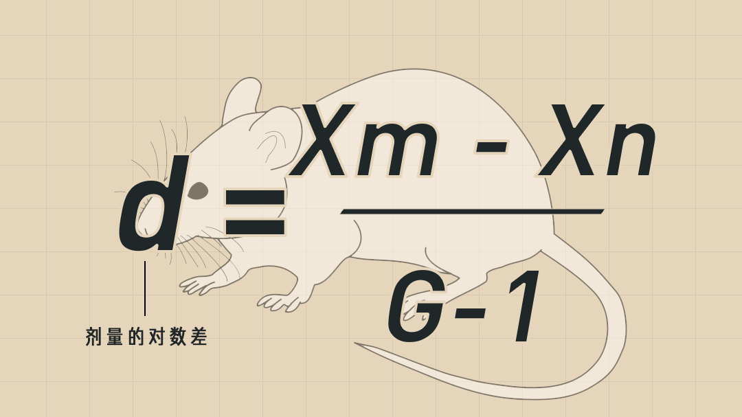 通过这个公式,也就是 Xm 和 Xn 的差除以组数减一,就能得到每组剂量间的对数差,从而确定每组小白鼠的给药量。