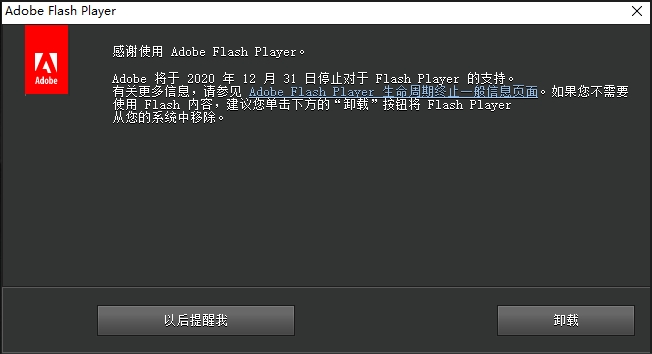 最终,在 2017 年,Adobe 宣布不再对 Flash 系列做任何更新,产品全生命周期的终结点 (End of Life)定在三年后的 2020 年 12 月 31 日,留给开发者做移植、交接工作。