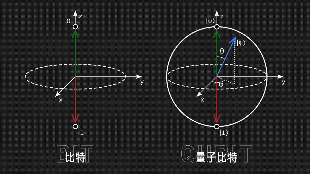 这个基本单位叫做比特,在经典计算机里,每个比特要么是 0,要么是 1。而量子计算机不同,每一个量子比特既可以是 0 是 1,也可以变成 0 和 1 的叠加态。