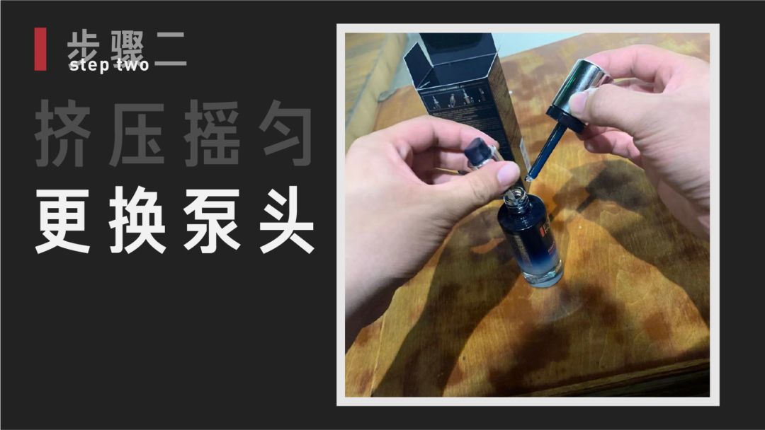 第一次使用时,先按压瓶口释放滴管内的精华,并使其和瓶内能抗衰老去皱的玻色因、LIFE PLANKTON™ 活源精粹 和“海藻精萃”混合,混合完之后更换泵头,就可以使用了。