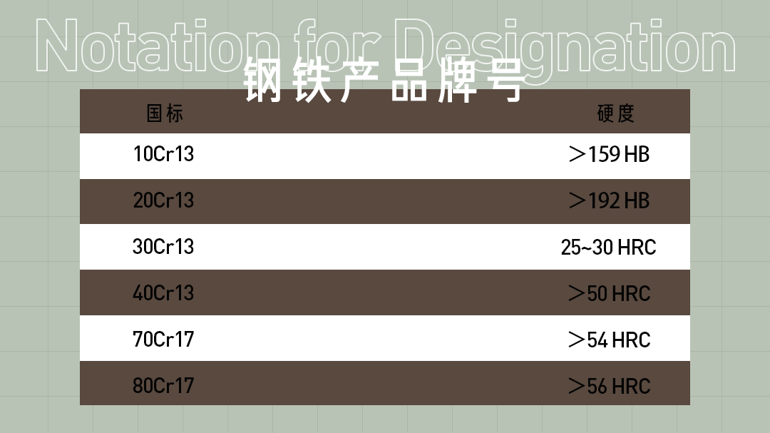 你在购买页面里看到的 30Cr13、70Cr17 是钢材的牌号,简洁地表明了钢材的成分,前面的数字表示碳含量,后面的数字表示铬含量,铬元素的加入提供一定的防锈能力。
