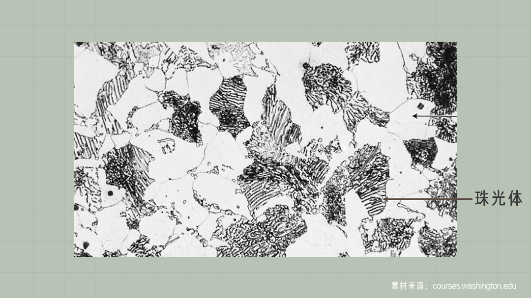 把 γ-Fe 降温到 α-Fe,同时把超过 0.0218% 的碳释放出来。这时候,根据不同的降温速度,金相显微镜下呈现出不同的结果: