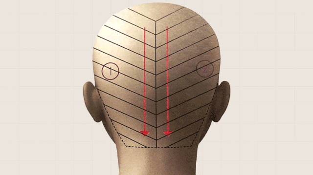 此外,还要根据温度来规划涂抹顺序。发尾温度比发根低,反应缓慢,所以要先让它们开始反应。而头顶温度低,周围温度高,所以会先处理前后左右的发根,再涂抹头顶的发根。