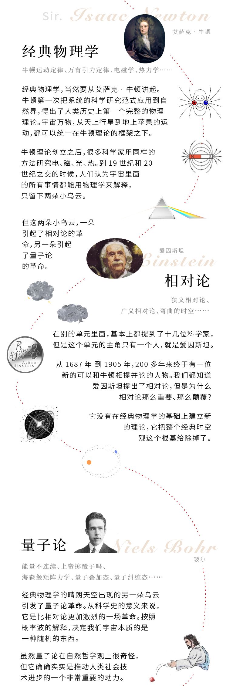根据我的经验,大部分人毕业之后,物理知识基本上都停留在中学层面,大概相当于400年前牛顿时代的水平。至于后来科学界又发生了什么,后来的物理学家们干了些什么,哪些人在在物理学历史上的贡献比较突出,哪些物理学家在业界的江湖地位比较高,其实绝大多数人都讲不清楚。虽然很多人都听说过相对论,可能也有部分人听说过一点点的量子论,但它们具体的内容是什么,大家基本上也是一知半解。