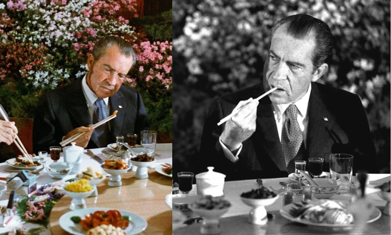 1972 年尼克松访华,在国宴上并不熟练地使用筷子,被解读为向中国示好的「筷子外交」。因为对不少外国人而言,使用筷子绝非易事。