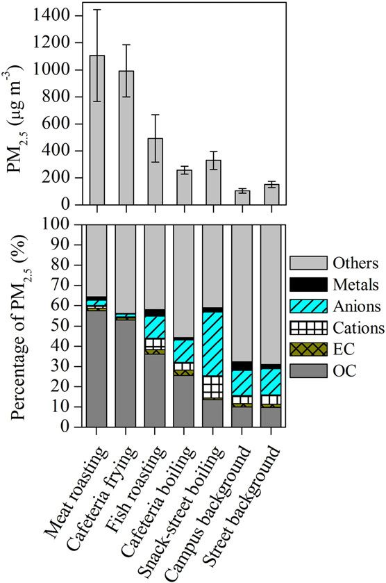 • 各种食物在不同烹饪方式中产生的 PM 2.5 主要类型及浓度