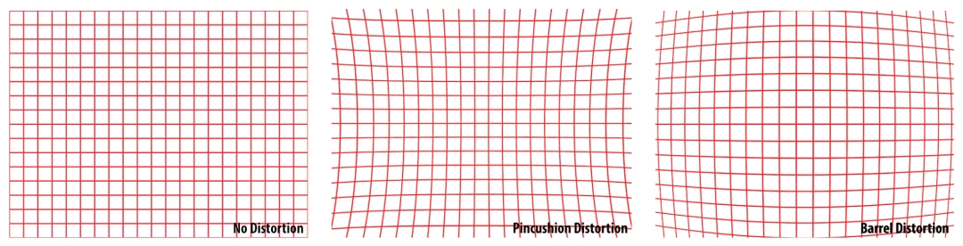 长、短焦镜头虽有着各自的优势,但缺点在于前面提到的镜头畸变。长焦镜头往往存在枕形畸变,广角镜头则会出现桶型畸变。