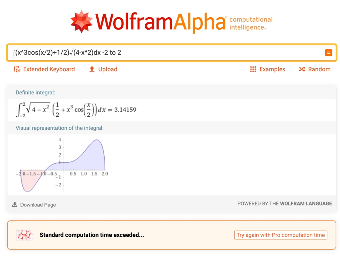 不过 W|A 最拿手的还是解数学问题,基于团队研发的 Mathematica 系统,可以快速解方程、画函数图像,甚至是各种「变态」的高数题。所以哪天你被学校食堂的 WiFi 密码难住时,不妨打开这个网站寻找答案。
