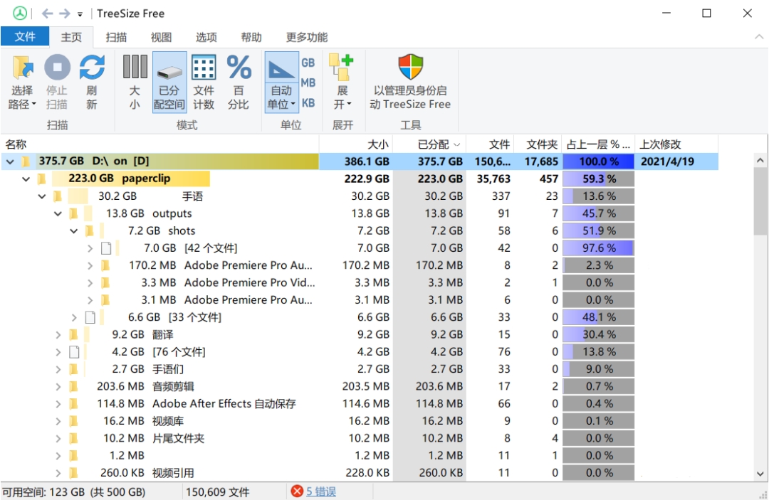 用 TreeSize 可以发现磁盘里的大文件和大文件夹,可以有针对性地把它们删除或是迁移。