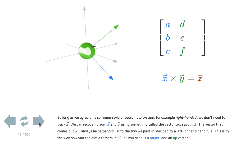 给基本操作找参考时偶然发现的个人网站。这篇文章以动效为切入点,讲解了向量、微积分等数学基础知识,细致且清晰。